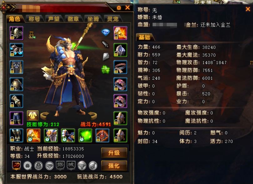 所记录的账号数据,更新至22号凌晨4:26 ①等级:人物等级和宠物等级均34,弑神等级33 ②团本:烛龙已打,五个蓝器灵已镶嵌 ③账号安全:老QQ号,可秒
