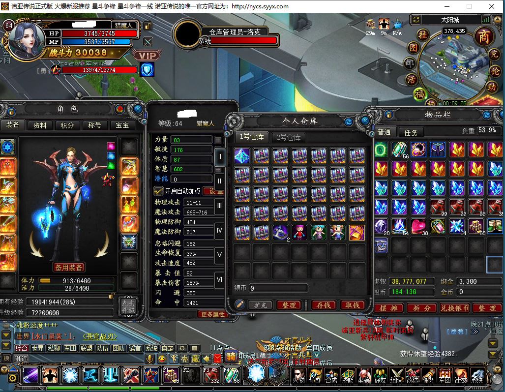 【无法绑定支付宝 猎魔人 角色等级64 女 1号1角色 】0氪账号!全8套,诺亚币绑金、圣殿轮回积分多多,本号从开服搬砖到现在.账号绝对安全。具体看图