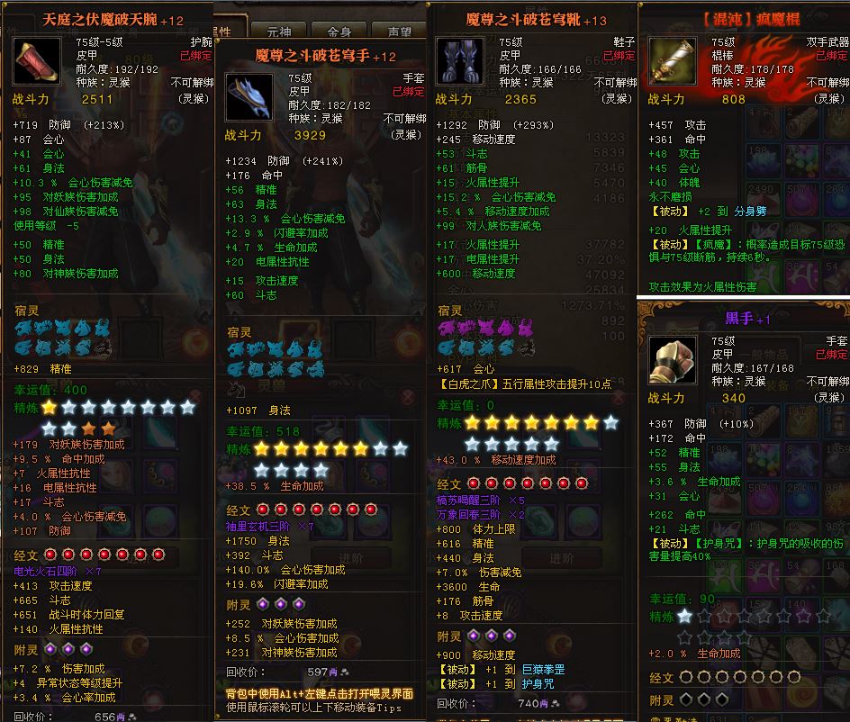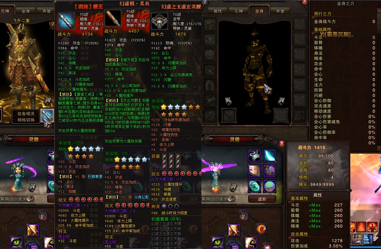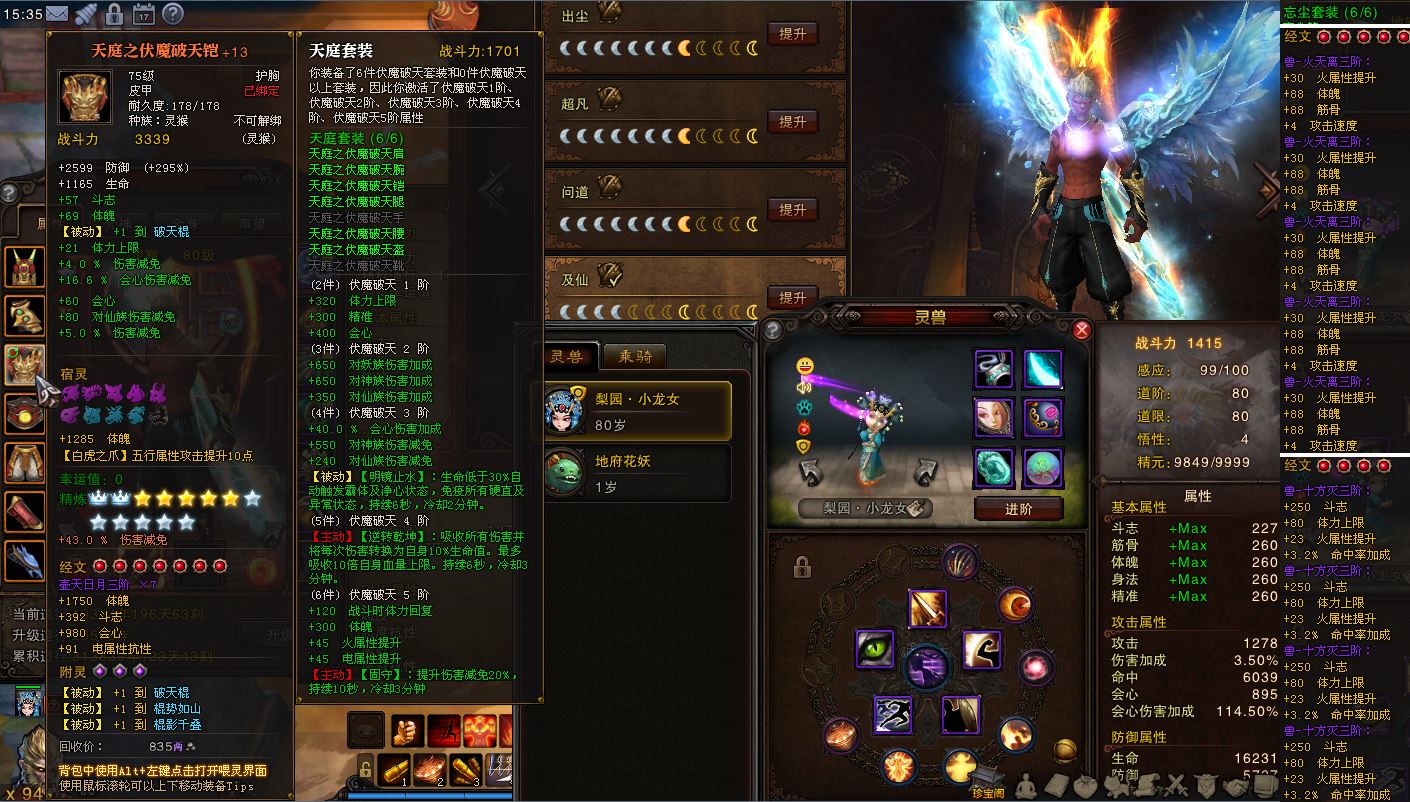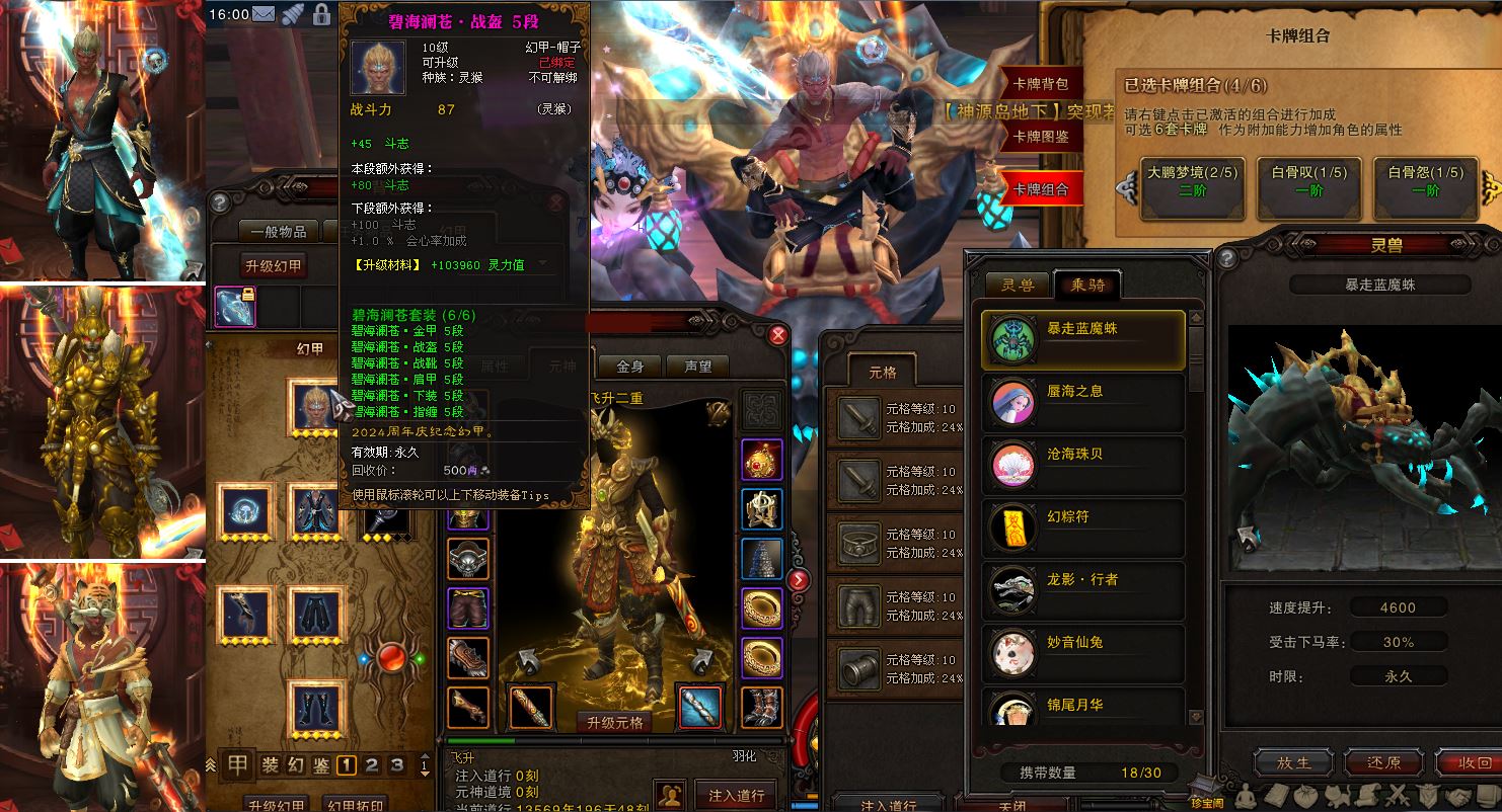 双线四区枯松涧13合1,80灵猴双翅膀华灯3W7攻892攻速,2345火提移速鞋未开光炼格372,高三四天庭魔尊套155星带75黑手疯魔。7D小龙女忘尘9兽三蓝