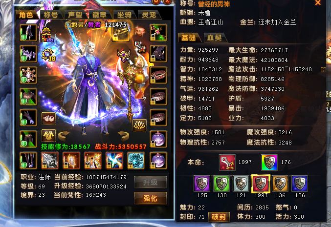 【终身找回包赔】【法师 男 角色等级69 不可以二次实名 】534W榜三法师,潜力很大,PK爽没时间玩了诚心卖