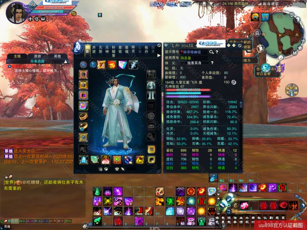 【九黎 五重修真 男 角色等级164 魔 神裔 】7阵都12阶,顶级九旒坤10武器,昭武11鞋子,天罡11衣服,9的帽子,万法1星,马上大乘战罡,超值号