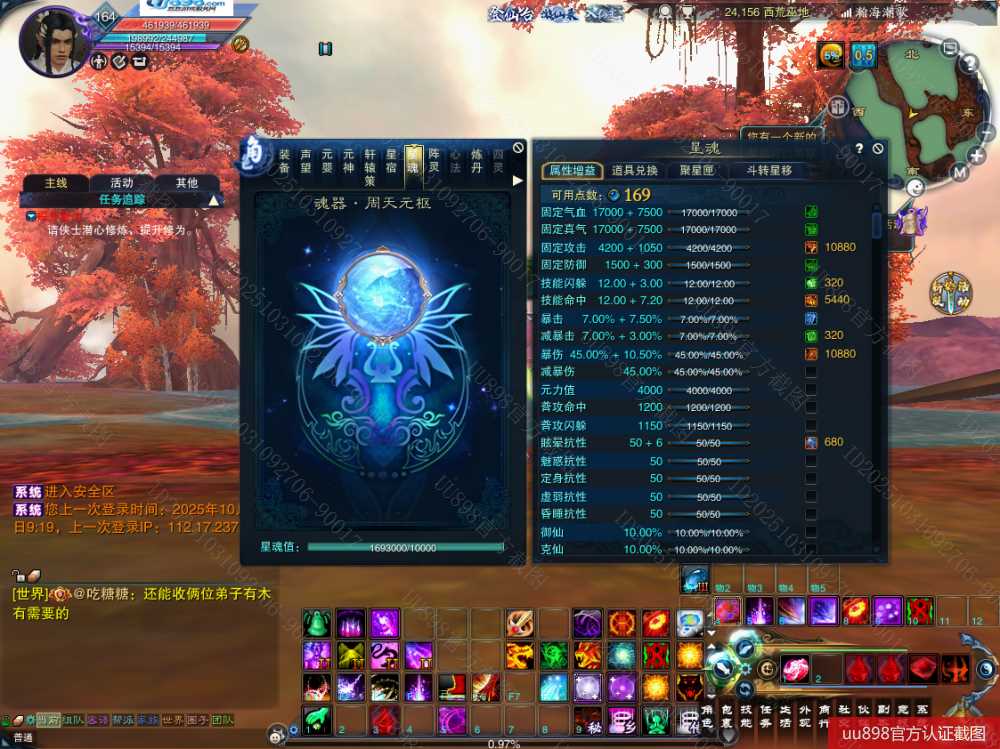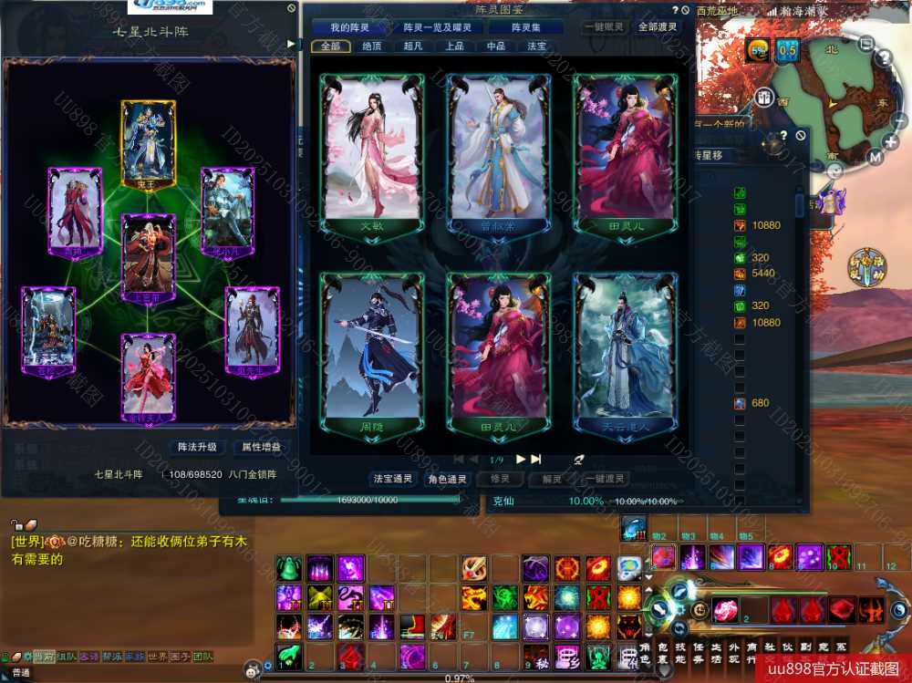 7阵都12阶,顶级坤10九旒武器,昭武11鞋子,天罡11衣服,9的帽子,万法1星,马上大乘战罡,超值号