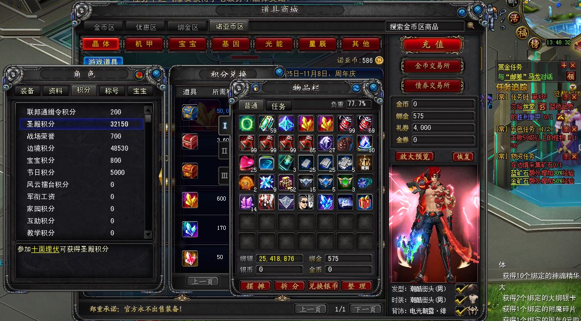 纯手动号,一号三角色,任务链没跑,有积分,带体力活力,结义4级半,其他自己看