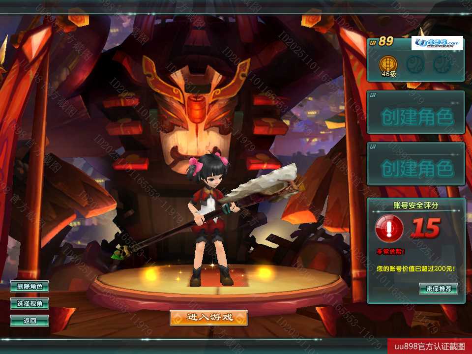 【终身找回包赔】【无法清空资料 角色等级89 女 猛将 】三无账号卖个等级号