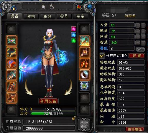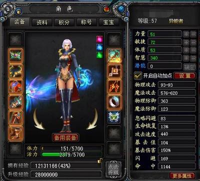 【无法绑定支付宝 异能者 女 角色等级57 】出售5开搬砖等级任务号,战力2万左右,强化7,武器8整组出售