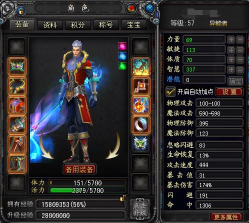 【无法绑定支付宝 异能者 男 角色等级57 】出售5开搬砖等级任务号,战力2万左右