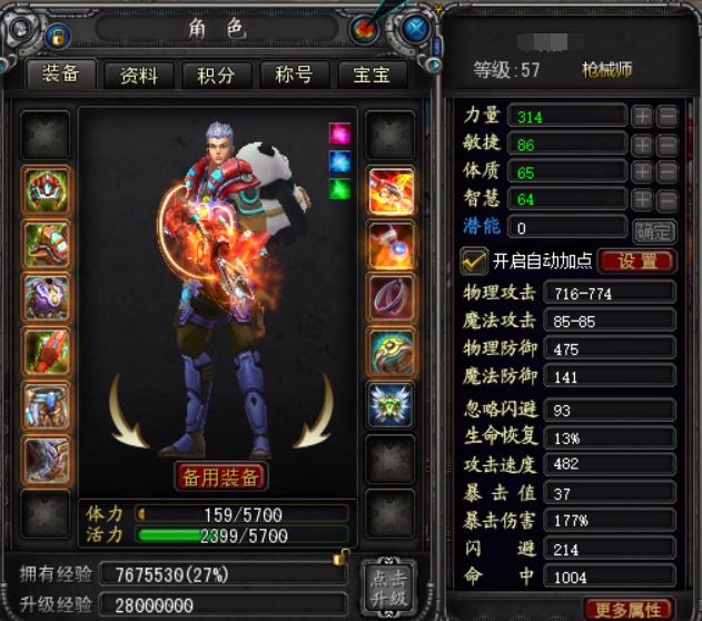 【已绑定支付宝 枪械师 男 角色等级57 】出售5开搬砖等级号,战力2万左右,强化7,武器8整组出售