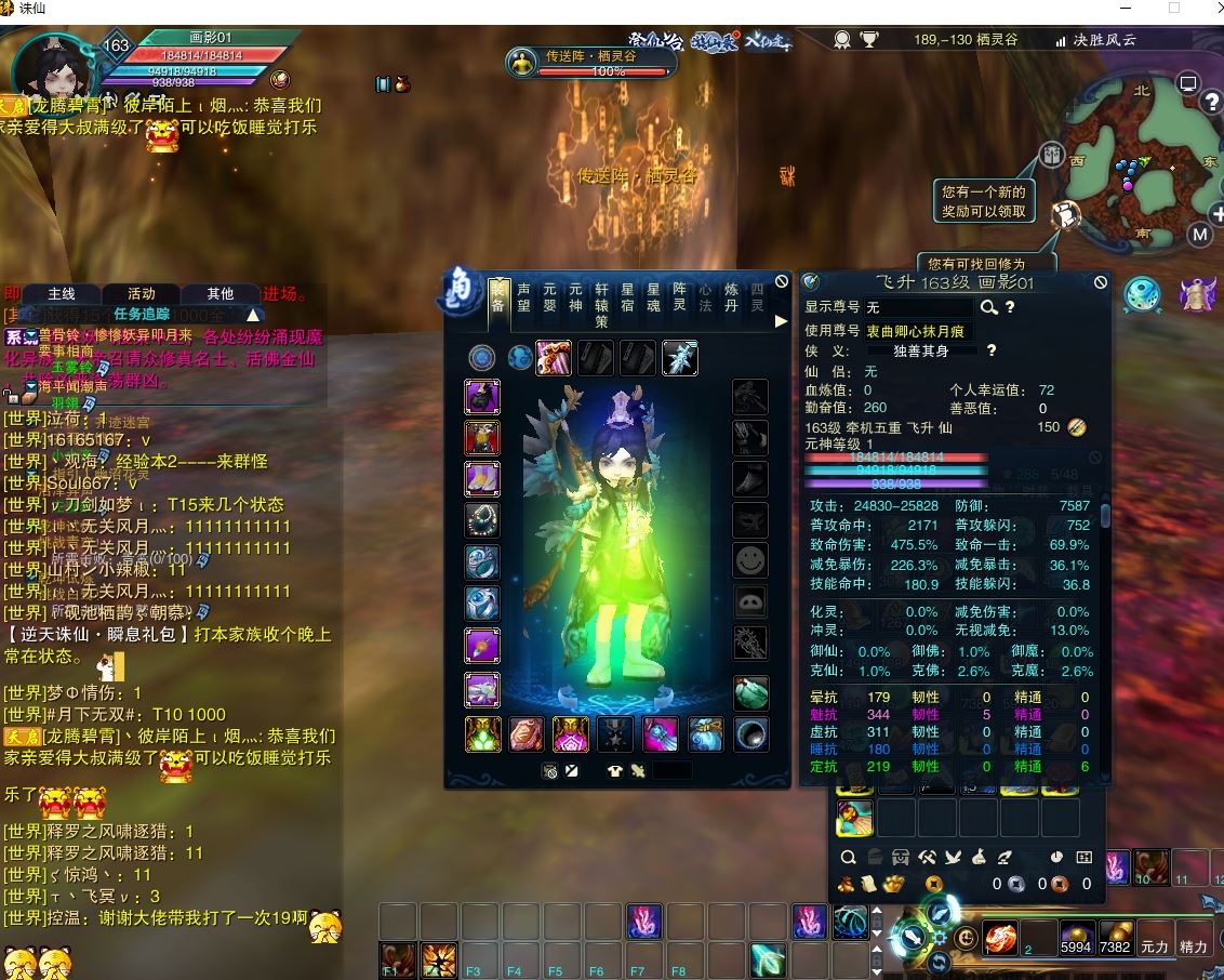 【牵机 五重修真 女 角色等级163 仙 天脉 】11修武武器衣服10鞋子9马上164