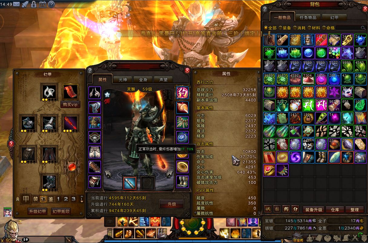 【灵猴 角色等级59 QQ等级11~20级 无QQ好友 】59灵猴万攻千提高三-5套荒印7D魔化花旦忘尘白夜冥灵幻甲3段未来之刃玉角坐骑改名签到V7