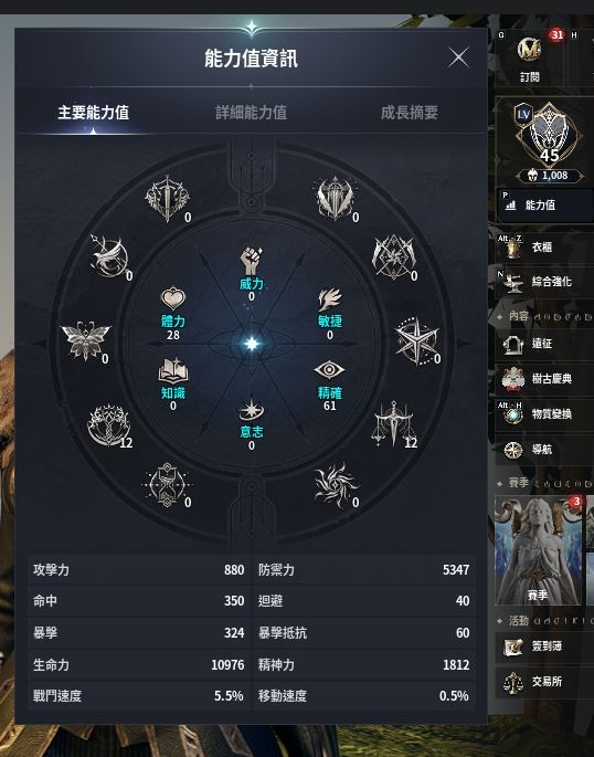 45级1000装等50万币,45级副本随便打,就打35和45副本各打了一次,其他都没打,打完随便几百万币,大背包大仓库,时装收藏,生活技能二阶,制造技能。