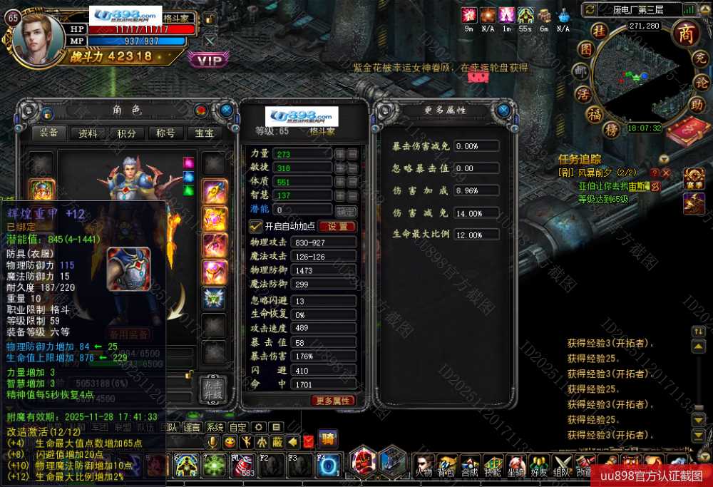 【终身找回包赔】【已绑定支付宝 格斗家 男 角色等级65 】防具12攻击加8换套装备就可以开炸了,爽歪歪