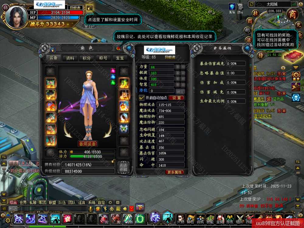 【终身找回包赔】【无法绑定支付宝 异能者 女 角色等级65 】武器加10其余加8任务号战场圣殿都有积分