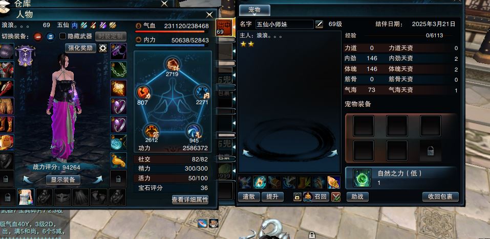 【三个月内,找回包赔】【帐号出售 五仙 女 角色等级69 江湖令剩余天数22 】该原有的都有,换四件90品BOSS就稳了