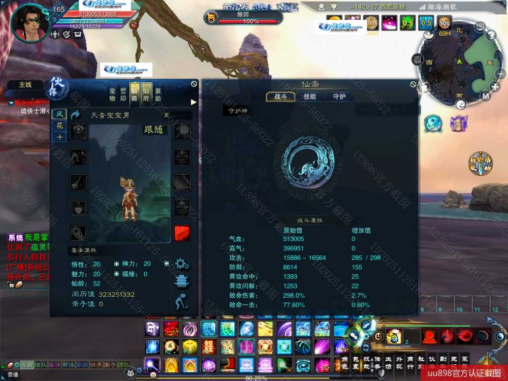 【一个月内,找回包赔】【天音 五重修真 男 角色等级165 仙 人族 】三礼包细节天音