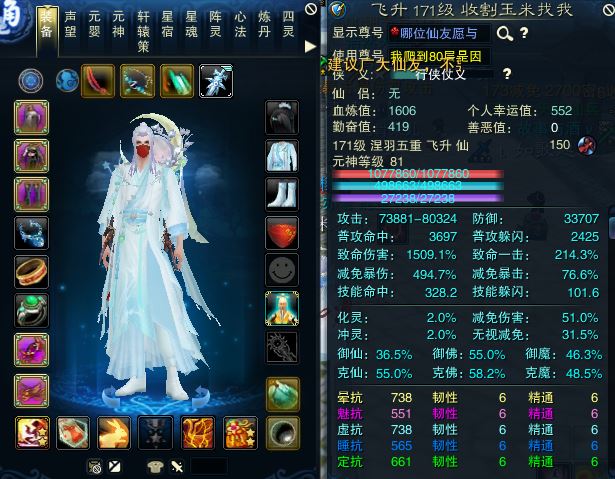 【涅羽 五重修真 男 角色等级171 仙 苍祇 】13武器13鞋12腰带