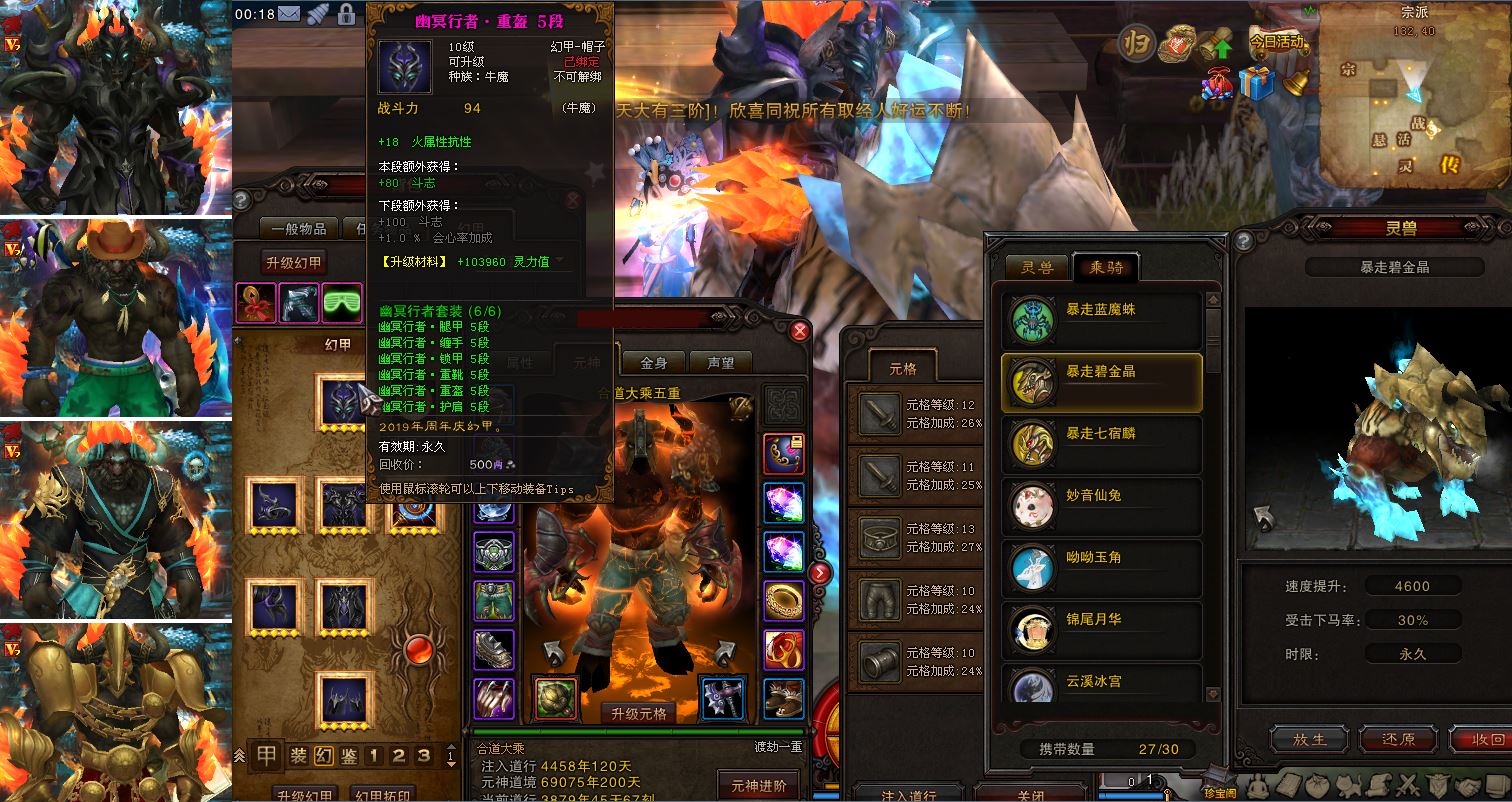 双线六区玉华州36合1,大背景59牛魔万3攻60%伤害,1100双抗1400火提移速鞋裤,全身高四三+10混沌武器30红头。5段紫虹妖月幽冥行者幻甲,沙滩碧海澜