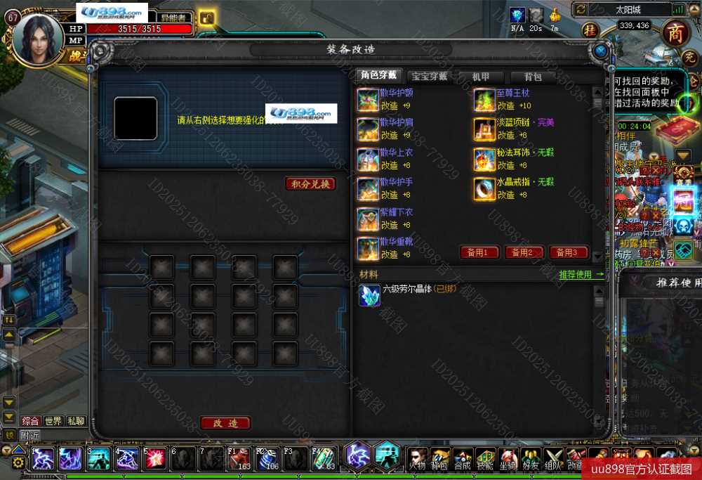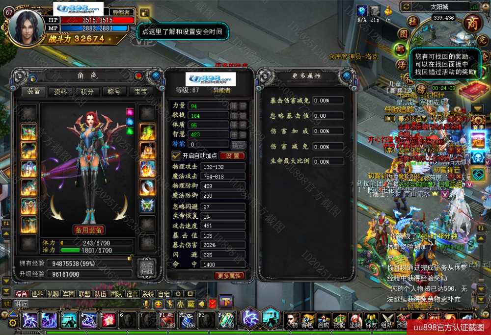 武器10其他+8+9,轮回积分十面积分多,没时间玩了,经验差2%到68