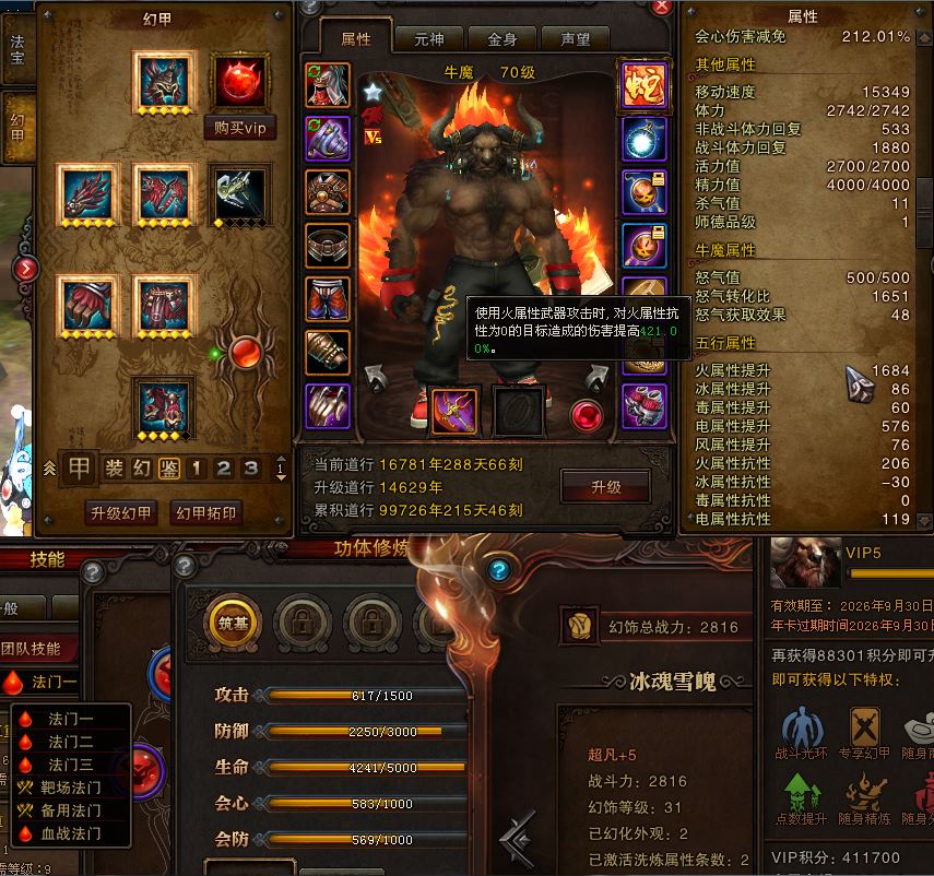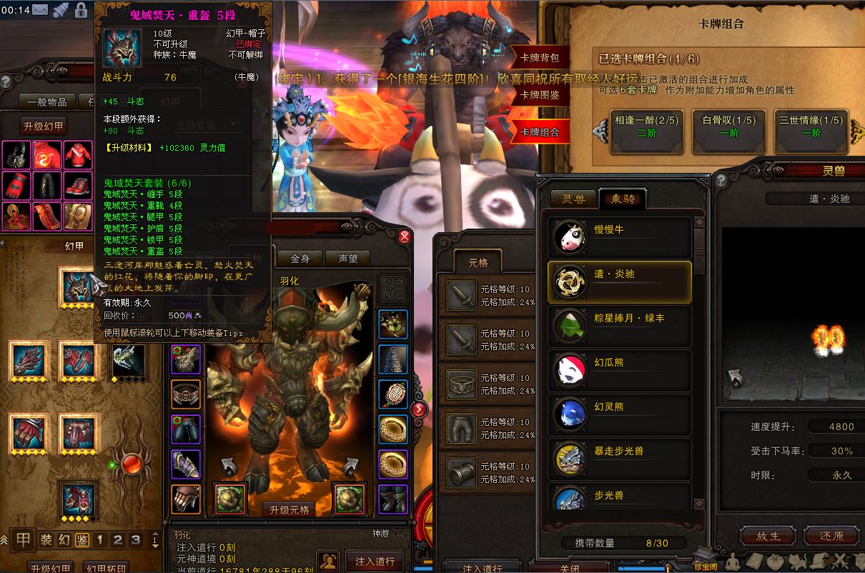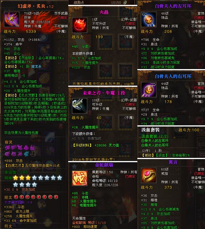 双线四区化龙池5合1,小背景70牛魔白骨左右耳金蛇命格,2W6攻1680火提未开光超凡5翅膀。幻虚狮驼套3冥印武器腰高四其他高三,5段鬼域赤动幻甲未来之刃幻武,