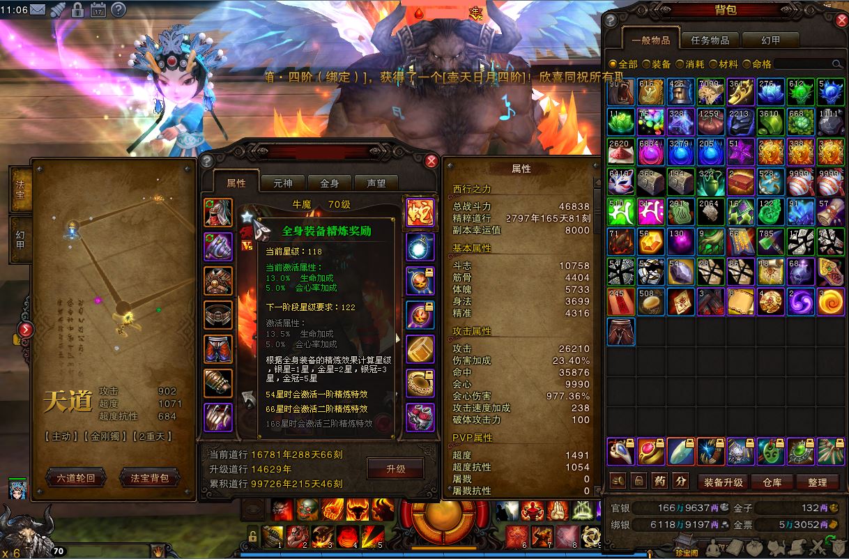 双线四区化龙池5合1,小背景70牛魔白骨左右耳金蛇命格,2W6攻1680火提未开光超凡5翅膀。幻虚狮驼套3冥印武器腰高四其他高三,5段鬼域赤动幻甲未来之刃幻武,6D梨园小龙女灵兽慢慢牛炎驰幻瓜熊坐骑,V到9月背包5W金票328太五51太六1W战励,仓库有改名113太乙330玉二100玉三。