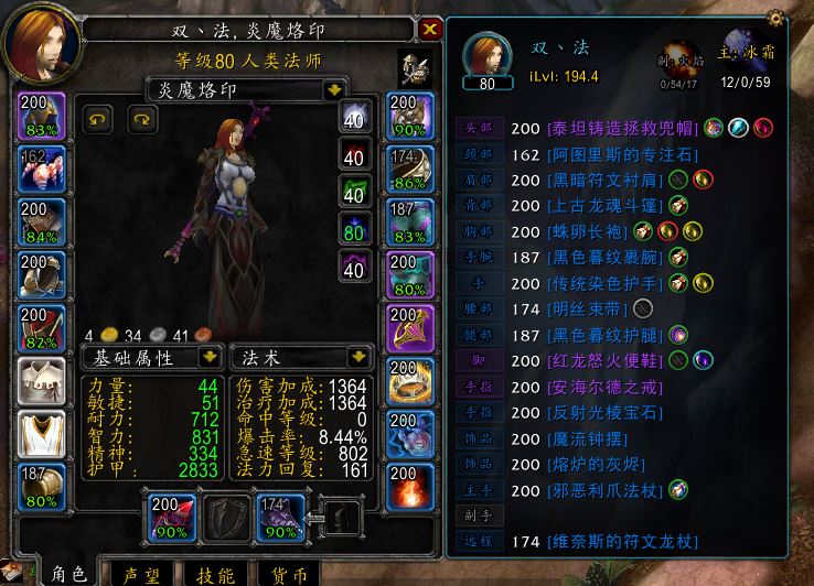 【人类 法师 女 注册邮箱不出售 无冻结记录 已绑定网易通行证 月卡12月 31日到期 】双天赋,寒冷已买,急速800+,有打团装备,碎片还有5400+