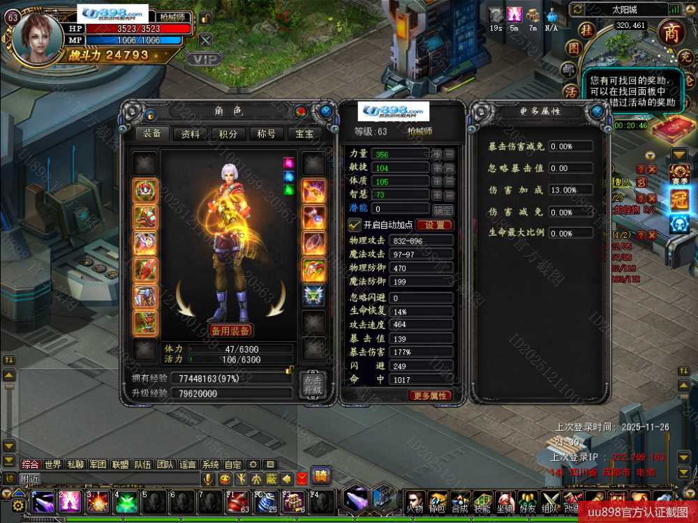 【终身找回包赔】【无法绑定支付宝 枪械师 女 角色等级63 】三无账号,全身+7(右边攻击件全+8)