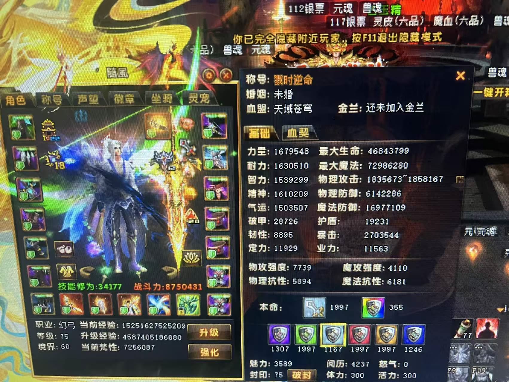 【幻弓 男 角色等级75 可以二次实名 】75弓手双战令已开875w稳步提升中