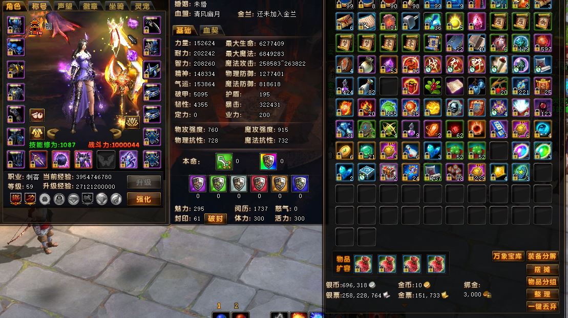 【刺客 女 角色等级59 不可以二次实名 】100万小刺客,3000绑金.15万金票