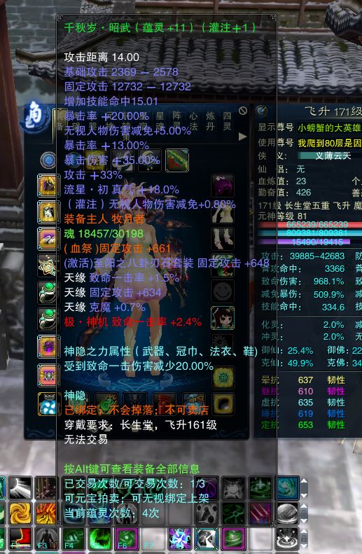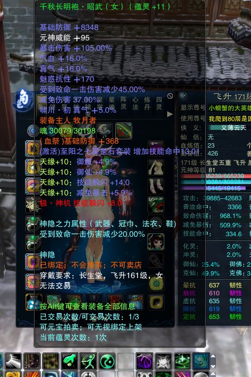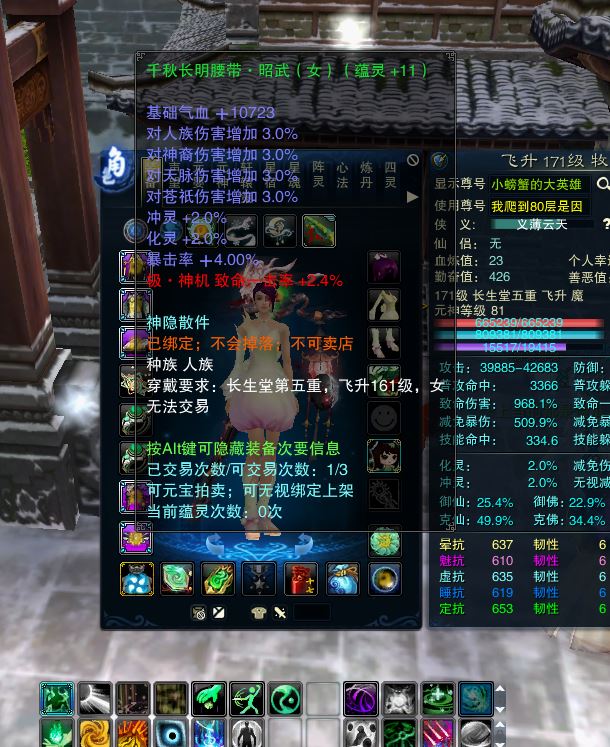 【长生堂 五重修真 女 角色等级171 魔 人族 】曦日寂月寒