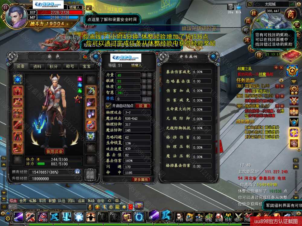 51.8级猎魔,+7套,体力活力都有,任务链没跑,基金礼包没买,持续升级中,卖个等级钱