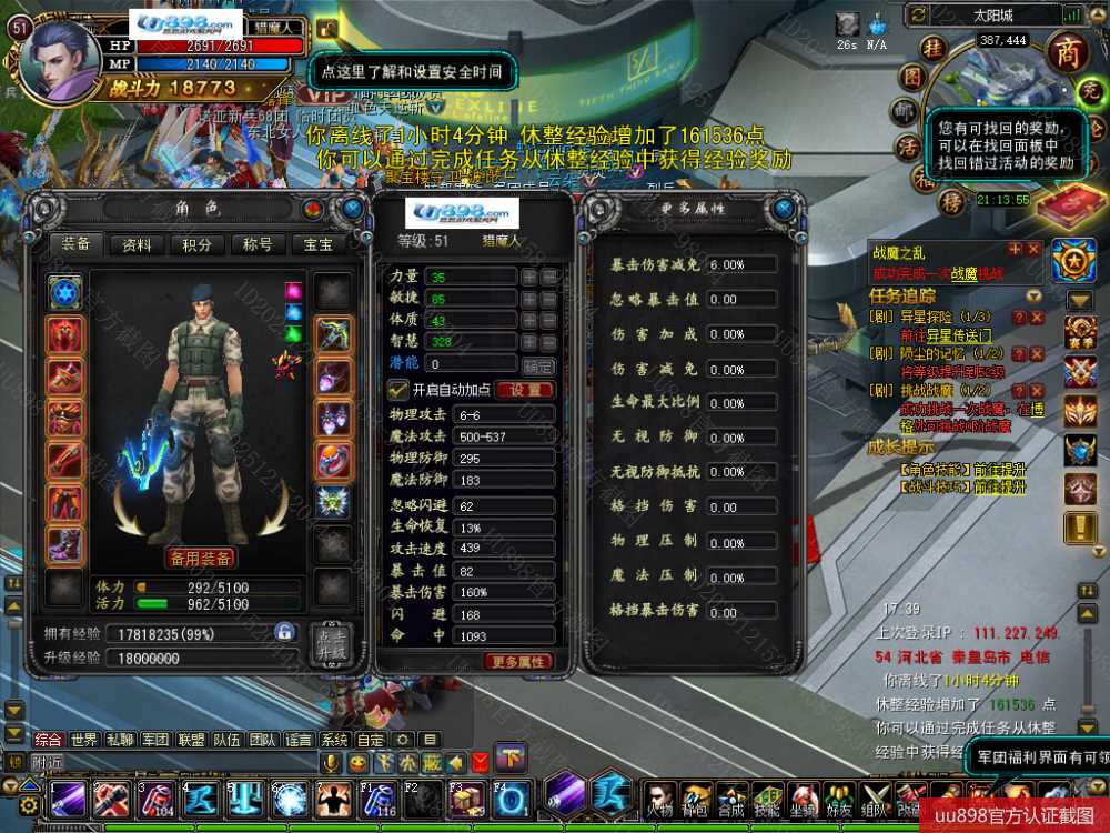 51.8级猎魔,+7套,体力活力都有,任务链没跑,基金礼包没买,持续升级中,卖个等级钱