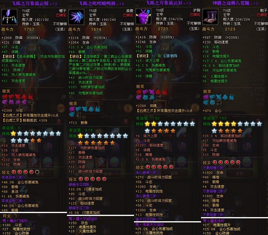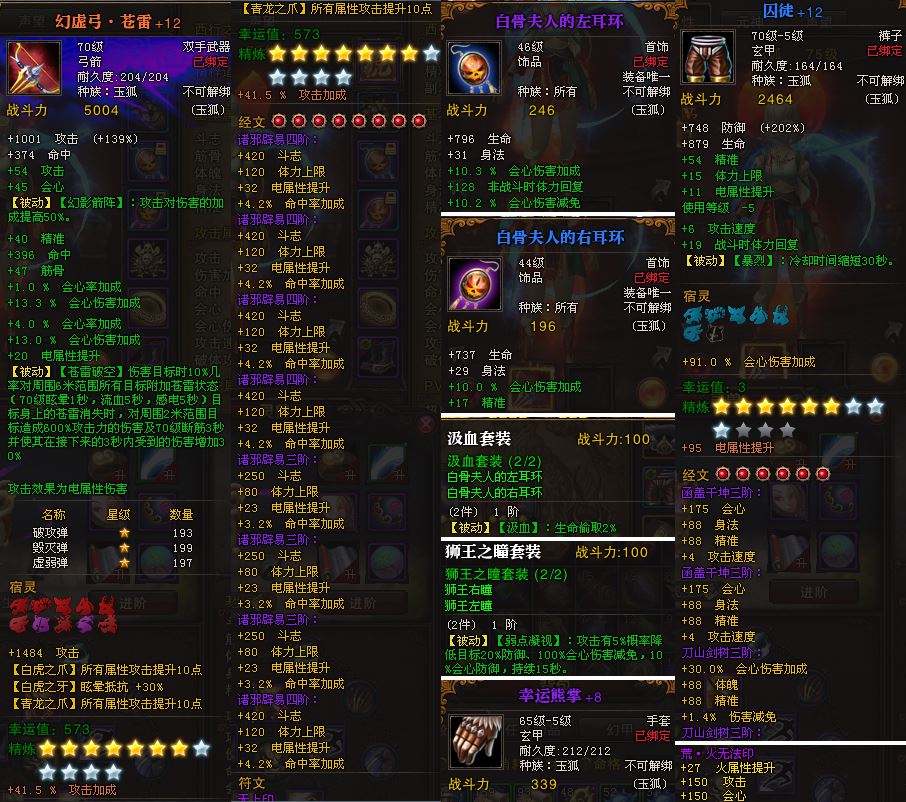 双线四区枯松涧13合1,双翅膀白骨左右耳小背景75玉狐,2W3攻击1500电提移速鞋未开光。高三四幻虚武器腰带,飞狐神猎套囚徒百花有荒印。7D魔化虎虎生威玩电3