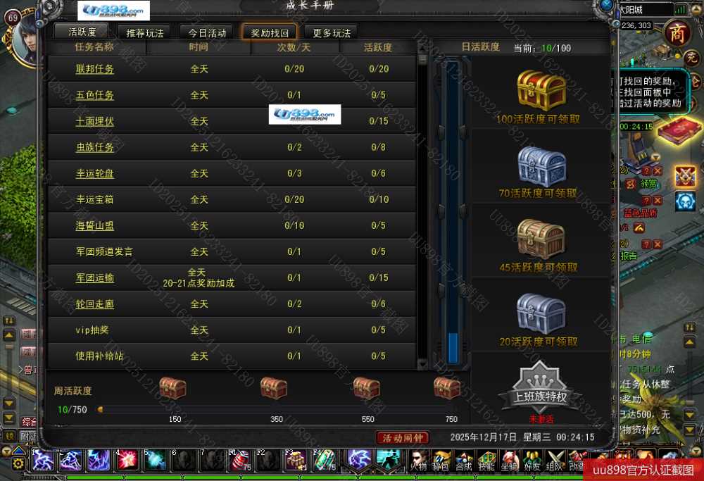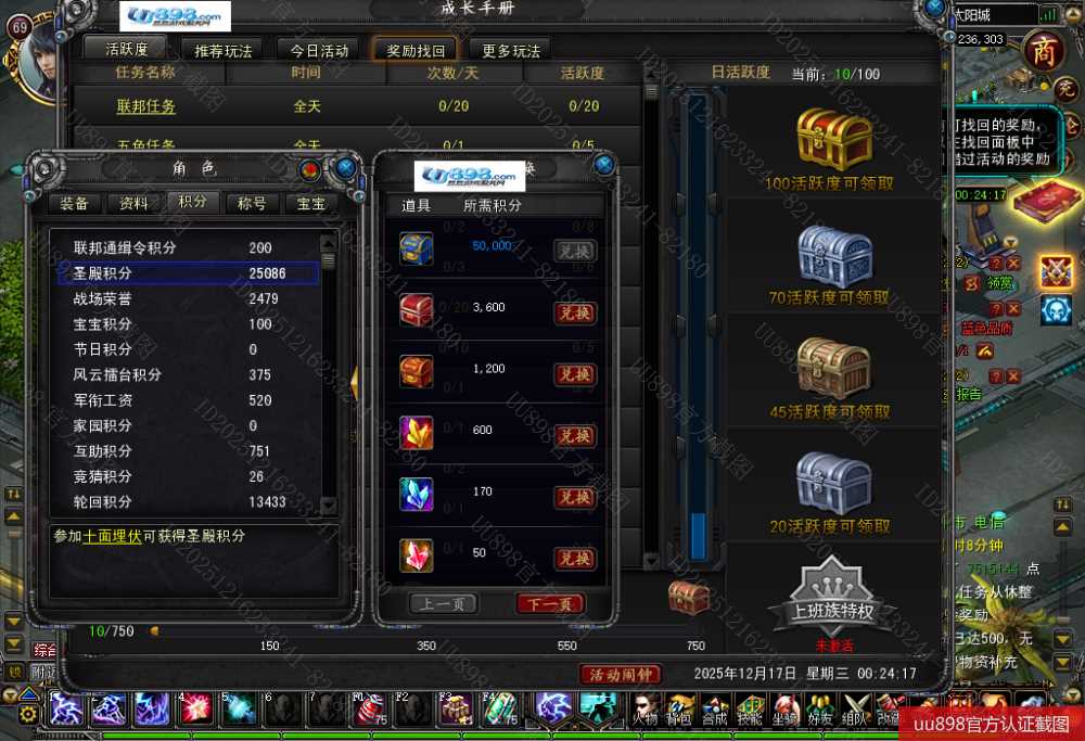 攻件10套,防具1个10两个9,有酒糖,100次赏金,1轮任务链,圣殿2w5轮回1w4,风云联邦积分可以换古董