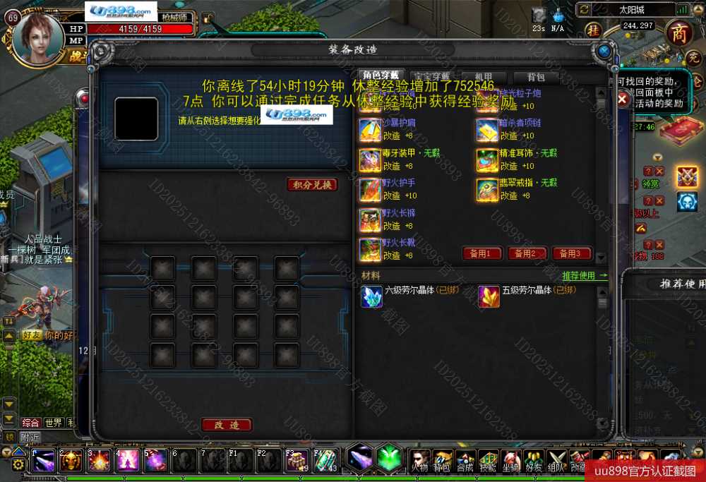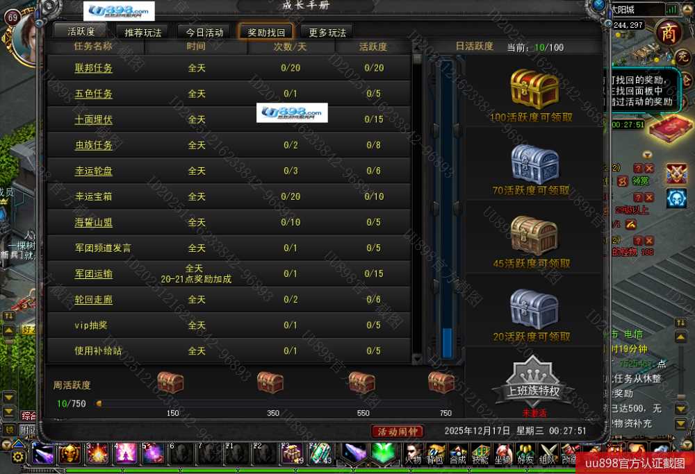 攻件10套,防具2个10其他8,2轮任务链,100次赏金,轮回积分1万,3W圣殿积分,风云联邦积分可以换金古董