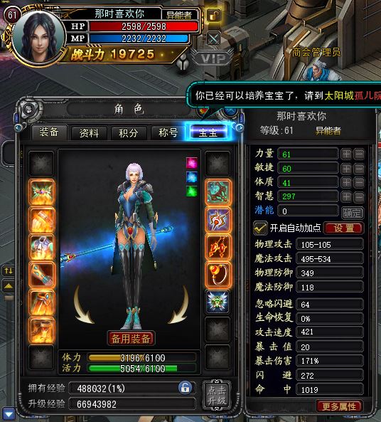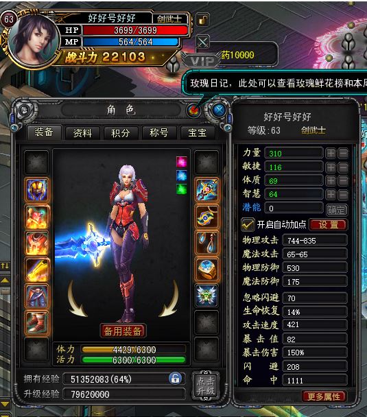 【无法绑定支付宝 剑武士 女 角色等级63 】双角色(63剑武士+61异能)