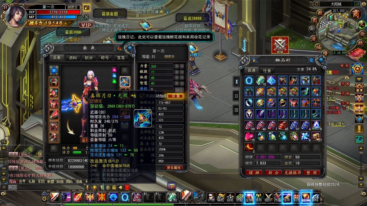 【终身找回包赔】【无法绑定支付宝 剑武士 角色等级51 男 1号2角色 】双号51