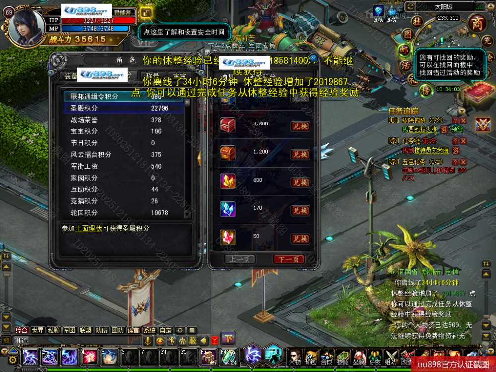 武器戒指10,其他+8,100+次赏金,身上1个7劳,2W3圣殿积分,轮回积分1w+联邦和风云积分可以换古董,2轮任务链