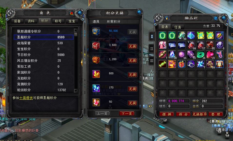 1号3角色,任务链没跑,都是+8套,都有轮回积分1万多,礼包没开,有活动坐骑,时装,其他自己看