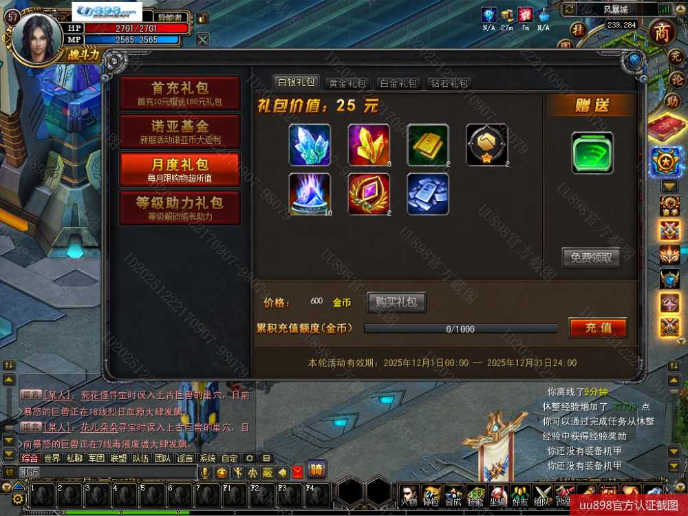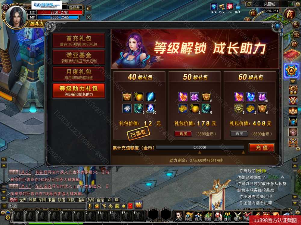 • 游戏区服: 诺亚传说/双线区/量子突袭