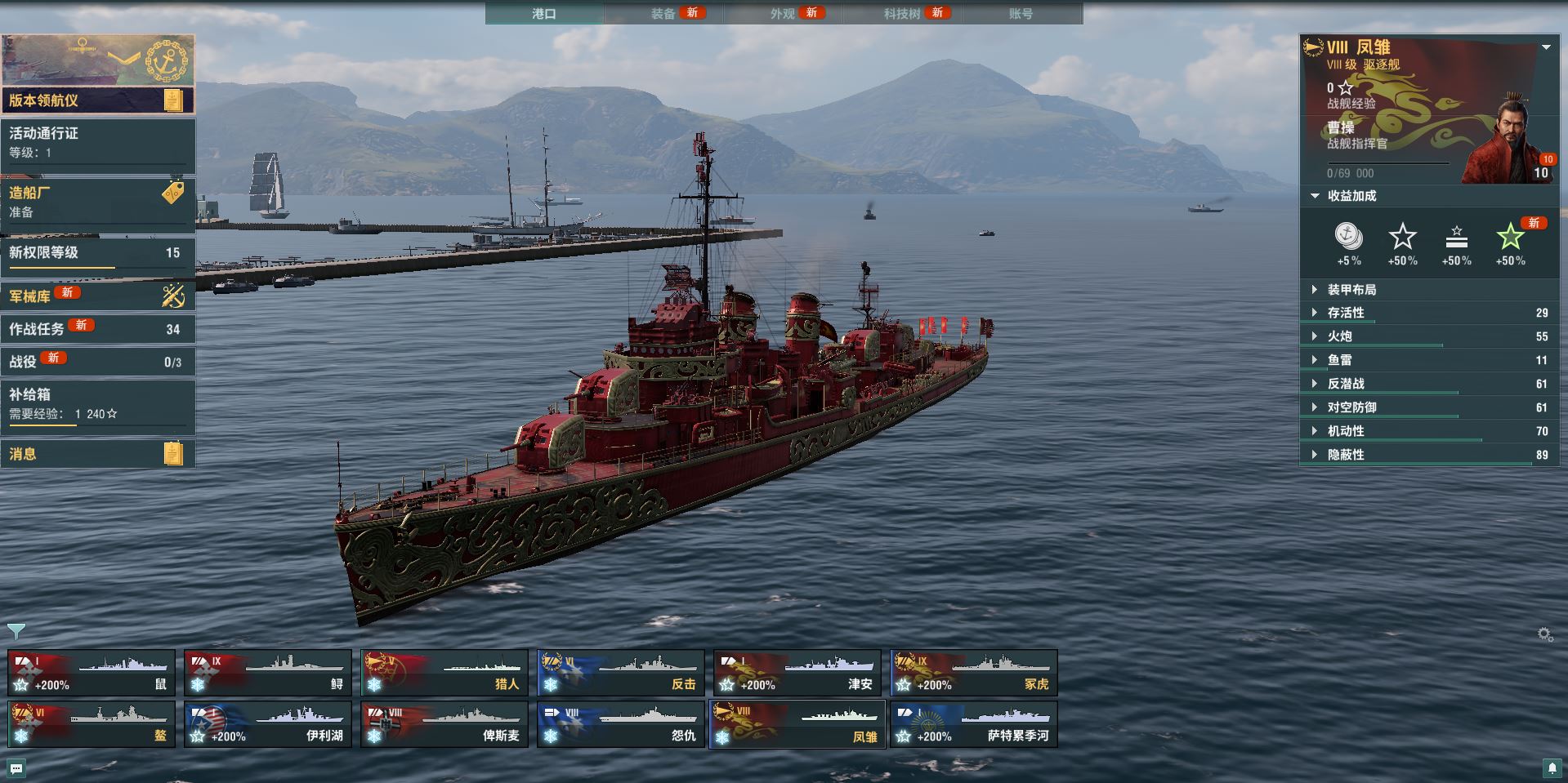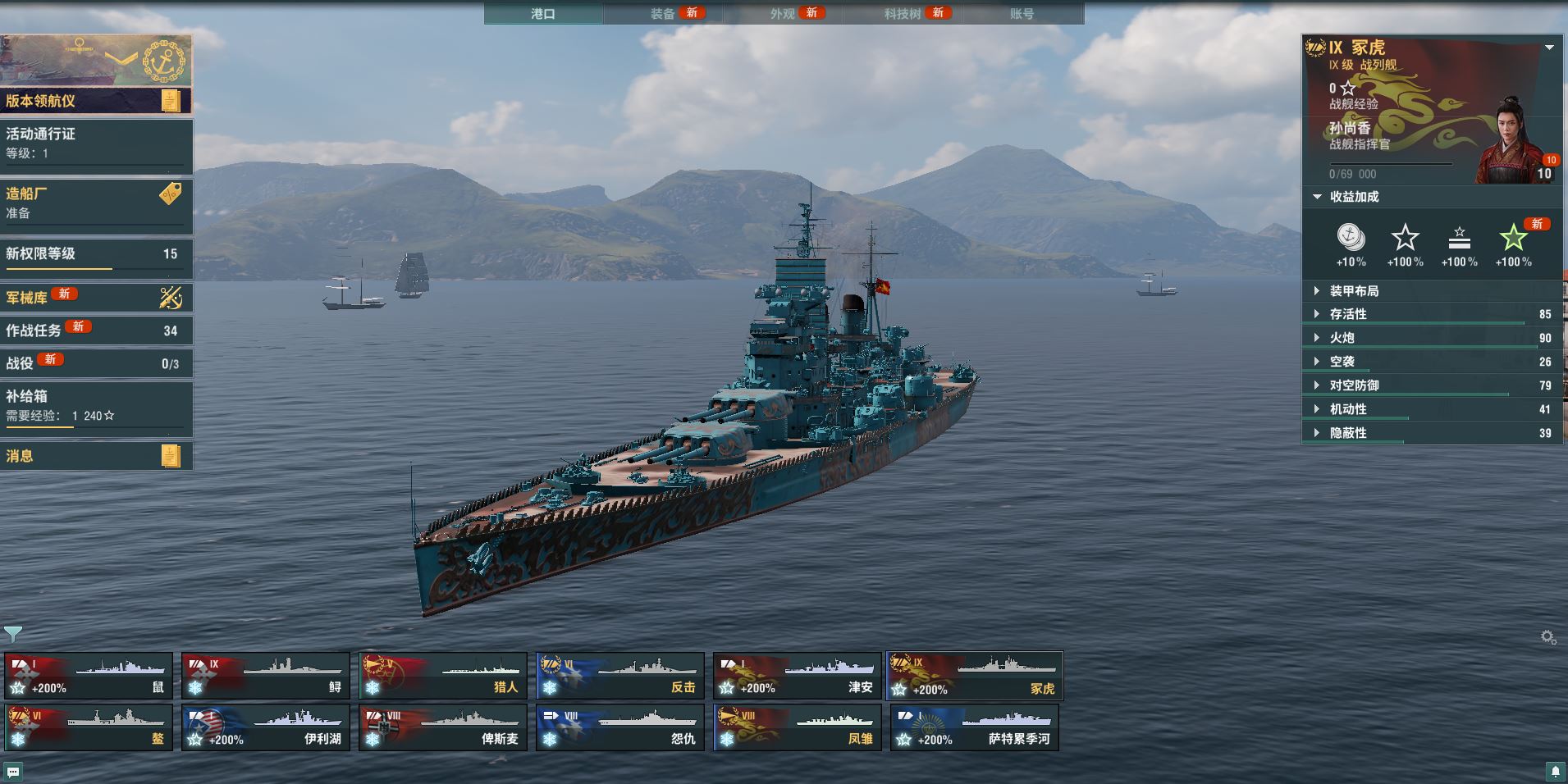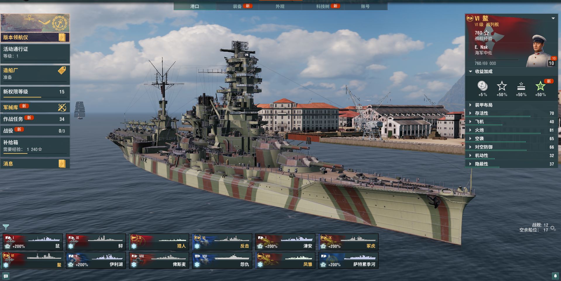 9级金币船冢虎8级金币船凤雏9级鲟8级俾斯麦怨仇2个6金反击、鳌5金猎人煤炭4.3万、钢铁1600(J52