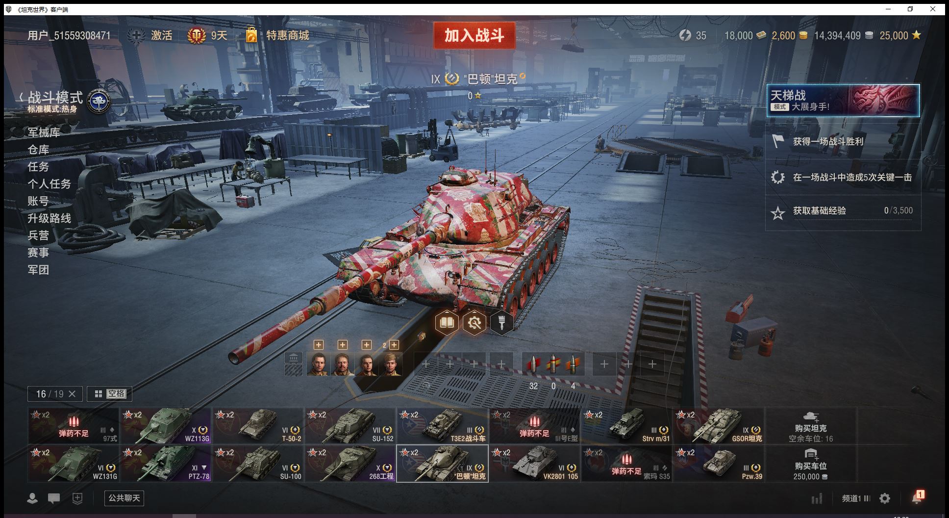 11级PTZ7810级268工程WZ113G9级特种巴顿坦克GSOR坦克2辆6级特种债券1.8万金币2600