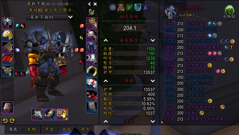 204装等8件P1毕业装4T1珠宝满级附魔宝石已上齐号上1750金