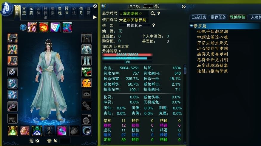 【一个月内,找回包赔】【万毒 五重修真 男 角色等级150 未飞升 神裔 】主线全清带金印上线即可飞升.玉兔宠物.经验珠4568铁玉齐全🐯