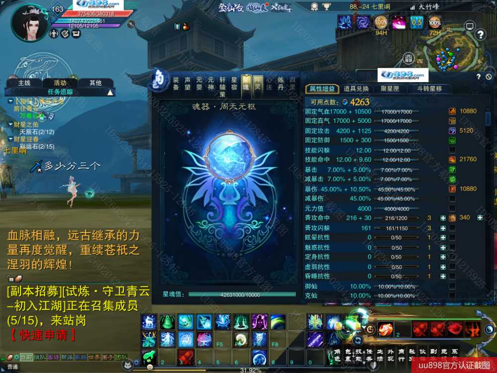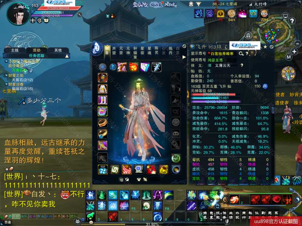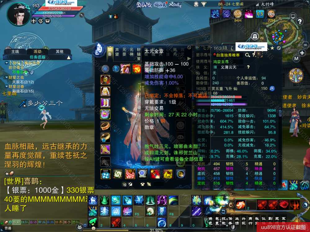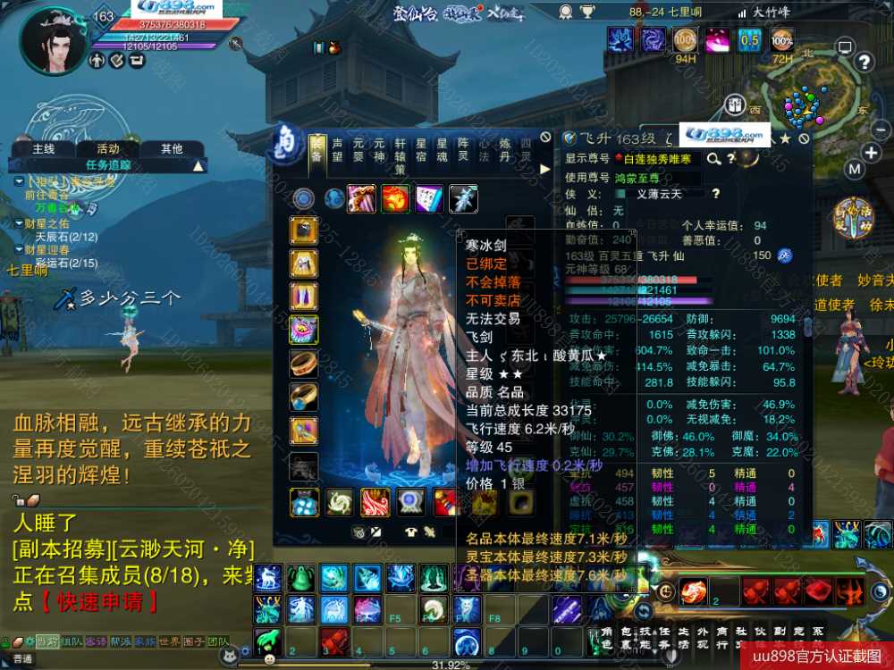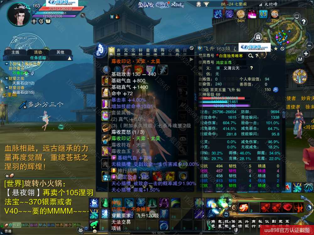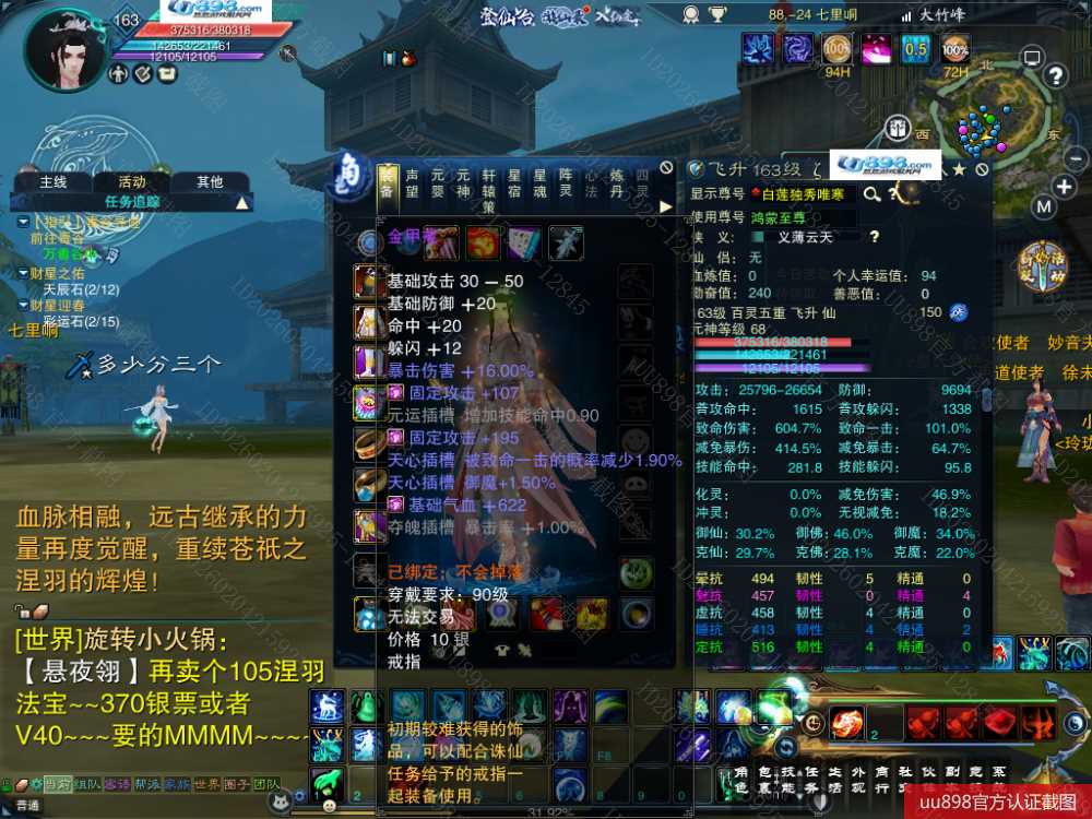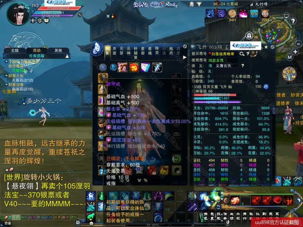 【百灵 五重修真 男 角色等级163 仙 苍祇 】7阵都12阶,天罡10的头,修武10的武器,11的鞋子,11衣服,包里还有10张凤羽,16星宝宝,能单刷T10和小云渺