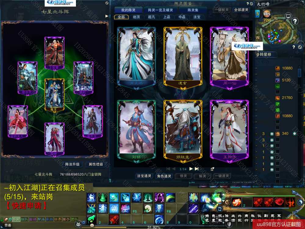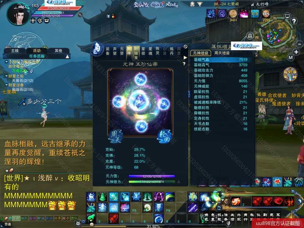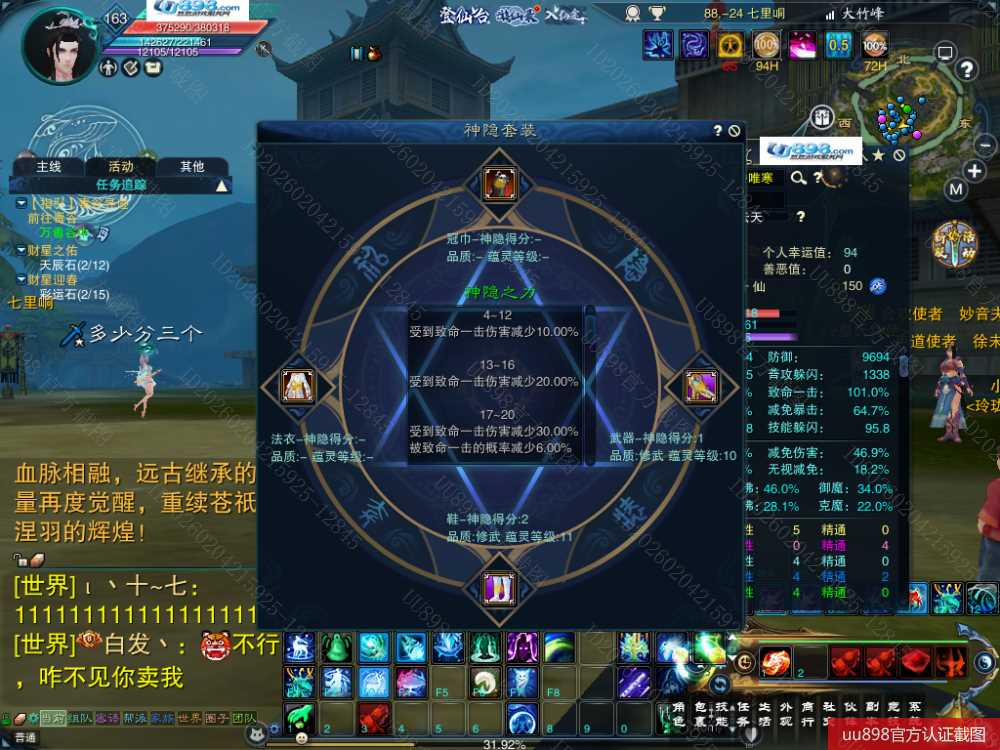 7阵都12阶,天罡10的头,修武10的武器,11的鞋子,11衣服,包里还有10张凤羽打本大家嘎嘎厉害,能单刷T10和小云