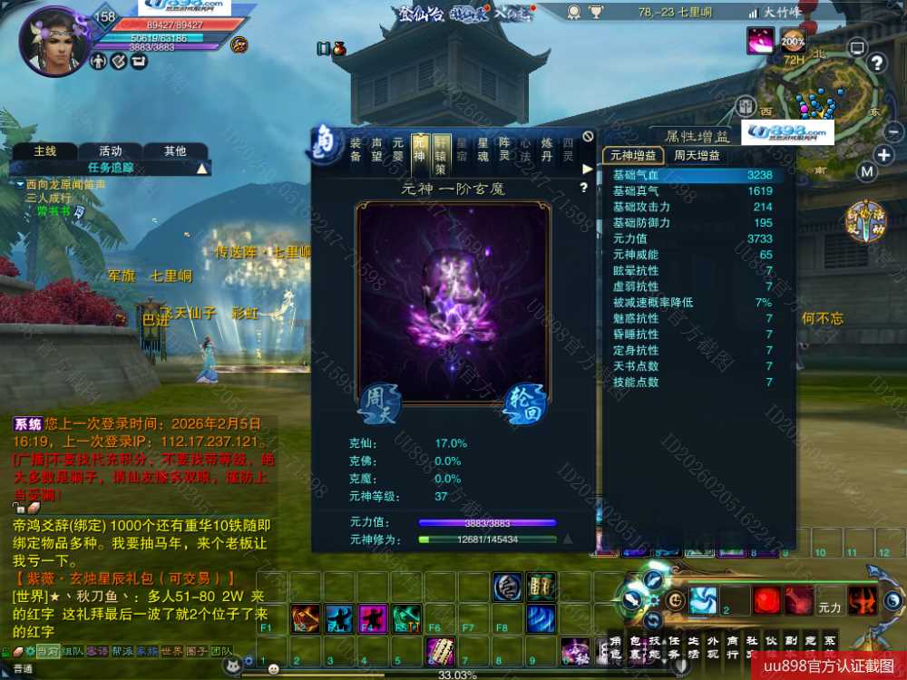 【太昊 五重修真 男 角色等级158 魔 神裔 】6阵都12阶,卡了一堆材料,45668玉都在,极品元婴。