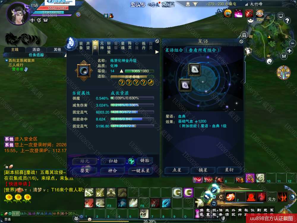 【逐霜 五重修真 男 角色等级158 魔 苍祇 】6阵都12阶,卡了一堆材料,45668玉都在,极品元婴。