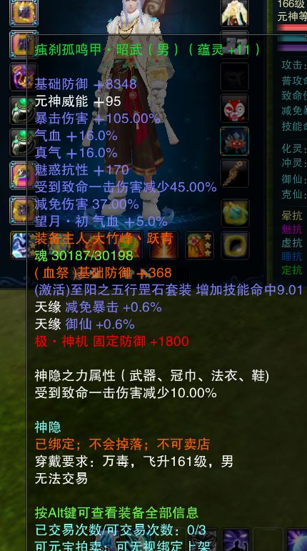 【万毒 五重修真 男 角色等级166 仙 苍祇 】便宜卖了
