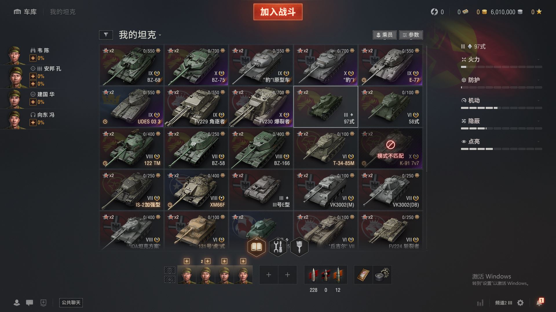 坦克世界360新号三条线6-10级车BZ-75豹1爆裂者组合600W银币无绑定支持换绑
