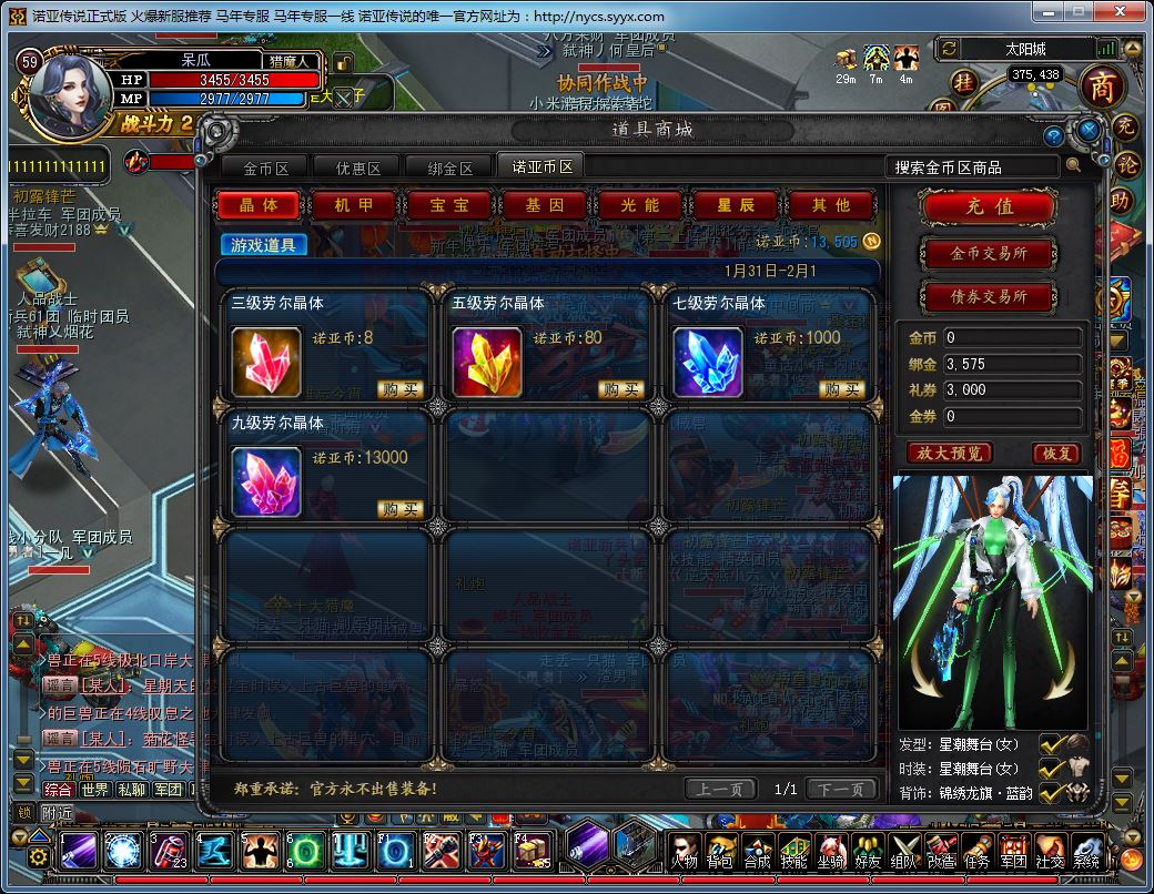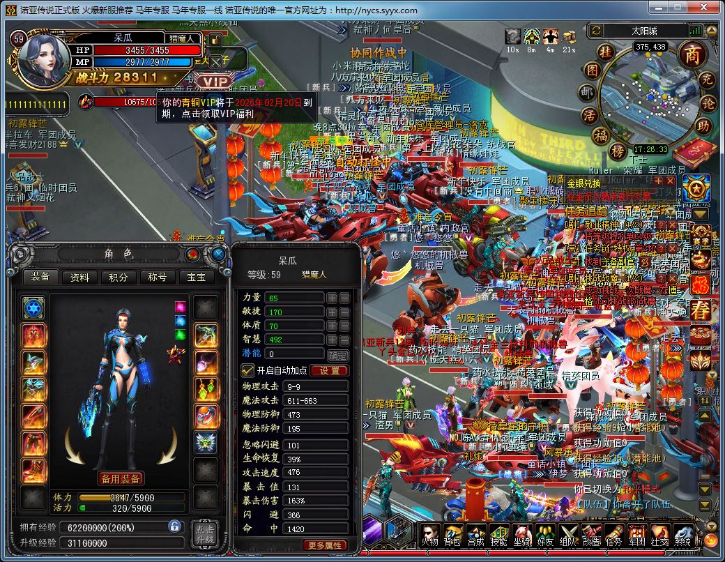 【终身找回包赔】【无法绑定支付宝 猎魔人 角色等级59 女 】装备+8套.特权vip绑金3575.圣殿分2w2.战场分8200.诺亚币1w35.各种积分多.任务链2次.基金礼包没买.