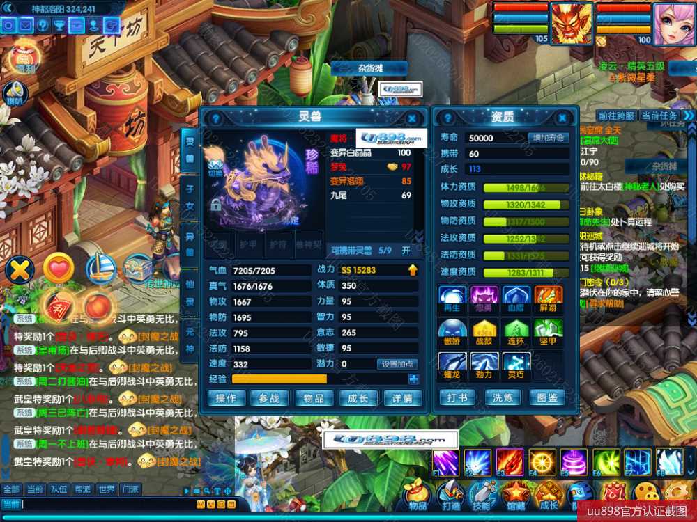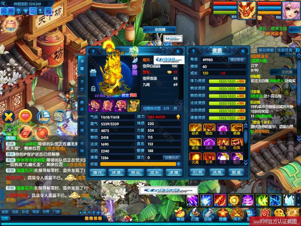 五开10技能魔将号,仓库还能换一只三星珍兽,资源金票多,心血号,因工作需要脱坑。